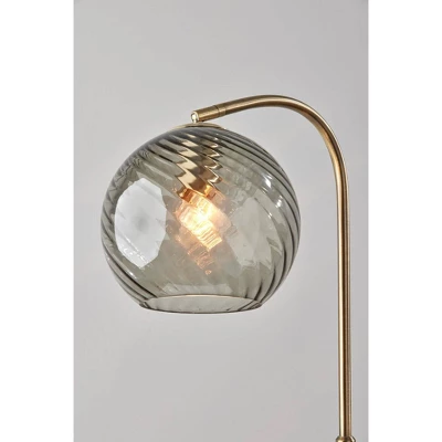 With a blend of contemporary and mid-century modern design elements, the Camden floor lamp imbues any space with warmth and light. A round base with an antique brass finish supports a matching tall tube and gently arcing stem. Suspended from the stem is a 9″ diameter globe shade crafted of smoked glass with a delicate swirl pattern. The glass leaves the 60W bulb visible, making a vintage Edison bulb (not included) a striking choice. For added versatility, the base of the lamp shade features an articulation point, allowing you to redirect the shade for a variety of looks and lighting options. Complete your decor with the coordinating Camden flush mount ceiling light, pendant light, wall lamp, desk lamp, and arc lamp.