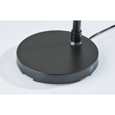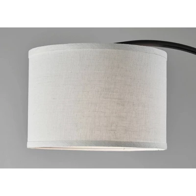 The 64″ tall Jace floor lamp by Simplee Adesso stylishly illuminates a seating area with overhead lighting that can be controlled with an adjustable shade. The slightly arcing design of this floor lamp makes it the perfect light source for reading in a recliner or working at a desk, while its slender construction makes it easy to position near couches, armchairs, or side tables. For even greater versatility, the lamp’s head features an adjustable joint, allowing you to direct the 100W bulb wherever it’s needed. The round black metal base provides stability, while the clean lines in matching black finish add a modern, minimalist touch. Topping off the lamp is a short drum shade made of off-white textured fabric. Operated by a rotary switch to easily turn it on or off, the lamp also includes a 5′ black cord. The floor lamp is also available with an antique brass finish.