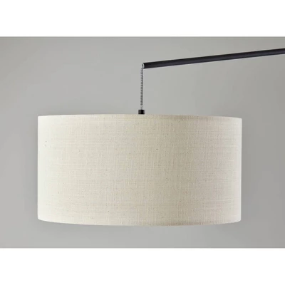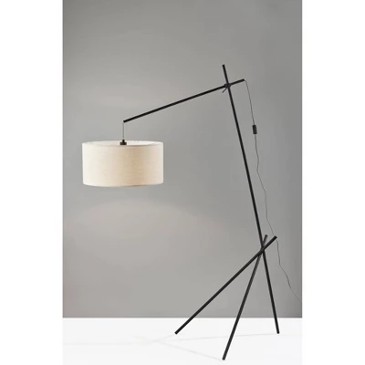 Design, function, and rich materials are perfectly balanced in the Varick floor lamp. Crafted of black metal, the lamp’s triangular footprint and adjustable arm create a dramatic silhouette. The black and white fabric-covered cord not only powers the lamp but adds to the design, visibly running up to the boom arm and connecting the arm to the suspended lamp shade. The short drum shade measures 20″ in diameter and is made of beige linen for a textured look. A white diffuser ensures soft and even lighting from a 100W bulb. For added versatility, the boom arm features an articulation point, allowing you to adjust the angle of the arm and height of the shade for a variety of looks and lighting options.