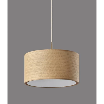 Big and bold, the Harvest large pendant light is an eye-catching piece bringing coastal design and warm lighting to your space. Measuring 20″ in diameter and 10.75″ tall, this pendant light is best used individually as a statement piece for your kitchen, dining area, or bathroom. Made of natural woven paper and trimmed with beige fabric along both the top and bottom for a neutral color scheme, the cylindrical shade adds stylish texture, while the white diffuser softens the light from a 100W bulb. This pendant light also features a 5″ diameter round antique brass base. With a long, 15′ white fabric-covered cord, the pendant height can be installed and adjusted to suit the needs of any room regardless of the ceiling height or can be used as portable lighting. Looking for color contrast in your décor? The Harvest pendant light is also available with a black finish on the base and black cord and trim. To suit the needs of any sized room, Adesso also offers a smaller version of this pendant light with a shade measuring 15″ in diameter.