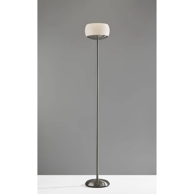 An elegant, yet modern look that is perfect for the office or living room, the Jessica 300W Torchiere takes your space to the next level. A milky white glass houses two bulbs for maximum light output. A simple rotary switch is located on a dome shaped base turning the lamp on and off. Made up of brushed steel finished metal, this lamp exudes sleek, modern style. This lamp provides bright ambient lighting for large living spaces. An Adesso patented 300 Watt Double Socket construction allows for two crisscrossed sockets, each holding on/off 150 Watt incandescent or LED bulbs which provides approximately 3 times more light than a typical torchiere. A High/Low rotary socket switch is located on the socket. NOTE: Adesso bulb recommendations: use incandescent bulbs up to 150W or dimmable led bulbs (DO NOT USE: 3-way bulbs or CFL’s). Bulbs are not included.