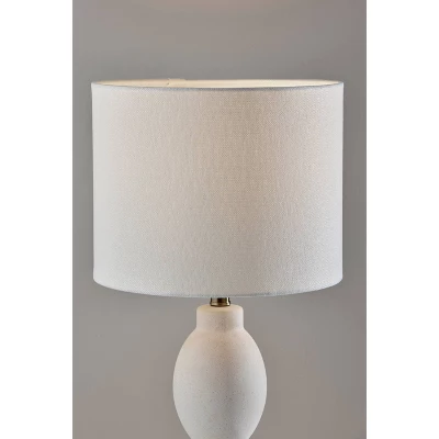 Upgrade your space with the transitional, monochrome aesthetic of the Naomi table lamp. Its white speckled ceramic base adds rich texturing, while the unique round geometric silhouette pulls attention. Topping the lamp is a white fabric drum shade that warmly diffuses light from a 100W bulb while highlighting the subtle texturing of the fabric. The lamp is easily turned on and off by a rotary socket switch. The Naomi table lamp is also available with a beige speckled ceramic base and beige textured fabric shade.