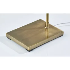 Adesso Zion Floor Lamp Antique Brass: Mid-Century Modern, White Textured Drum Shade, ETL Listed