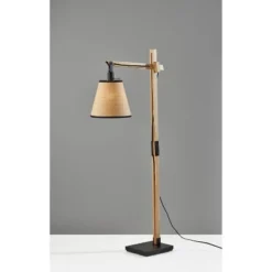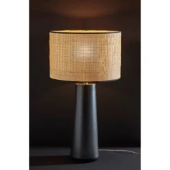 Sheffield Tall Table Lamp Black – Adesso: Ceramic Base, Rattan Shade, ETL Listed, 3-Way Switch