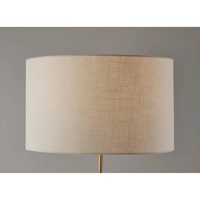 The adjustable height Winthrop floor lamp merges function and mid-century style for the perfect lighting solution for any space. The antique bronze body with brass accents features clean lines rising from a rectangular base. The 1″ diameter tube leads to a narrower brass tube that is adjustable, allowing you to vary the lamp height between 53″ and 63″ to suit your lighting needs. The lamp is topped with a short drum shade in a cream cotton and linen textured blend to softly distill the light from a 100W bulb. Easily turned on and off by a rotary socket switch, the floor lamp is powered by a 5′ gold fabric-covered cord. Complete your décor with the coordinating Winthrop table lamp.